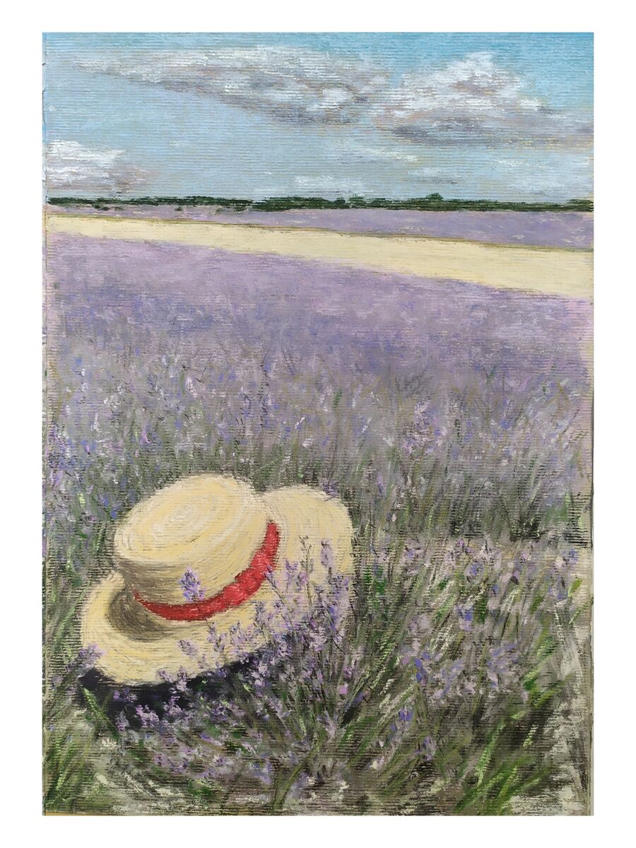 lavender field, straw hat